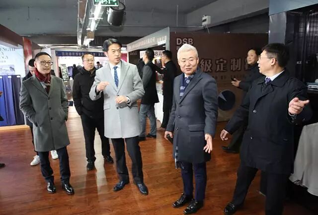 中国服装协会常务副会长、定制专业委员会主任杨金纯,副主任委员邵宏杰、秘书长赵雅彬等行业领导在巡视展馆,与企业家对话。