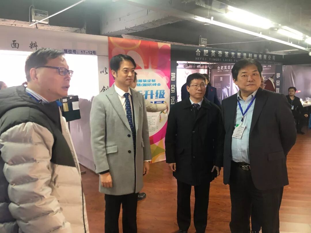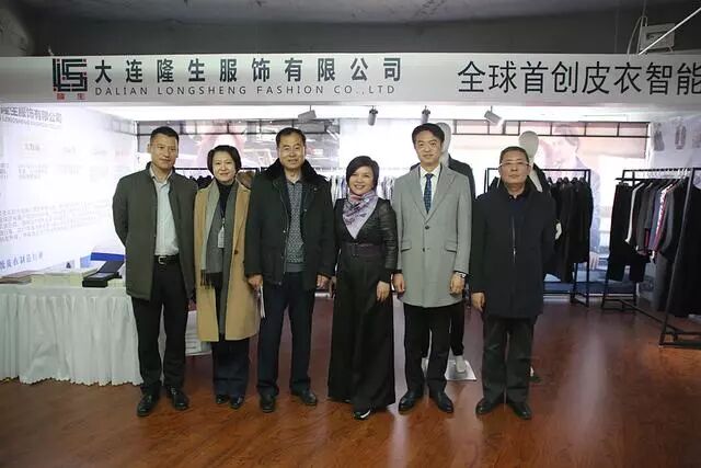 这是中国服装协会常务副会长、定制专业委员会主任杨金纯与大连经信委领导、辽宁省服协秘书长等与吴总在大连隆生展位前合影留念。