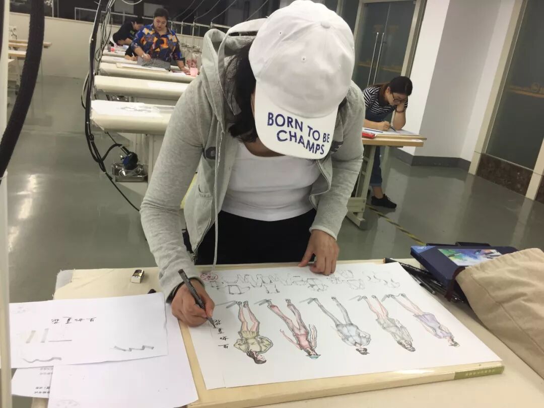 此次服装设计测评以都市女装的春夏旅游运动装,年龄为45-55岁,心理年龄40-45岁,作品需呈现系列感,服装制版以女西装制版绘制纸板和白胚布现场制作,考试时间从上午九点一直持续到晚上七点,历时10个小时,终于完成了各自的考试内容。