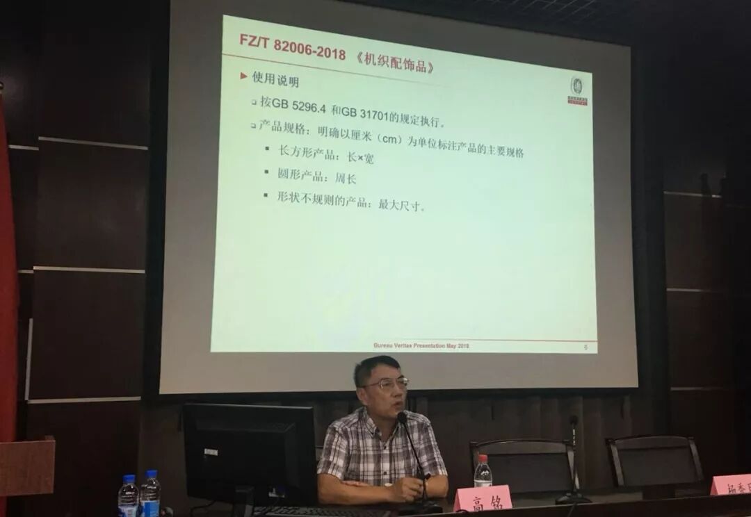 全国服装标准化技术委员会秘书处工程师杨秀月、必维申美商品检测(上海)有限公司高级工程师高铭分别对GB/T 31900-2015《机织儿童服装》、GB/T 33271-2016《机织婴幼儿服装》、GB/T 35270-2017《婴幼儿背带(袋)》、GB/T 35448-2017《婴幼儿学步带》、GB/T 35458-2017《游戏服装》、GB/T 35460-2017《机织弹力裤》、FZ/T 81022-2018《机织厨用服饰》、FZ/T 82006-2018《机织配饰品》的主要技术内容进行了介绍。