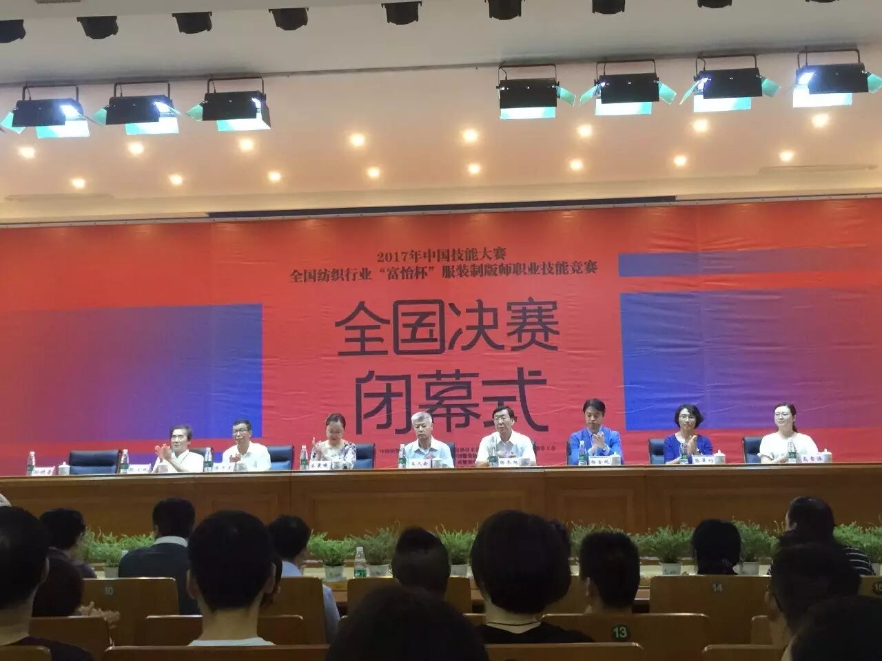 9月11日上午,大赛举行了闭幕式,出席闭幕式的领导及嘉宾有,中国纺织工业联合会纪委书记王久新,中国财贸轻纺烟草工会副主席杨东旭,中国就业培训技术指导中心技能竞赛处副处长宋晨曦,中国服装协会副会长杨金纯,纺织之光科学教育基金会秘书长张翠竹,富怡集团天津宝盈电脑机械有限公司副总经理高雪源,江西服装学院院长陈万龙,东华大学教授、博士生导师张文斌等。中国纺织工业联合会人力资源部主任、纺织行业职业技能鉴定指导中心主任孙晓音主持闭幕式。