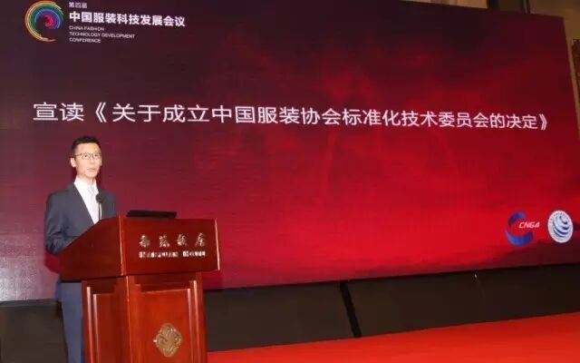 ▲中国服装协会常务副会长陈大鹏宣读《关于成立中国服装协会标准化技术委员会的决定》