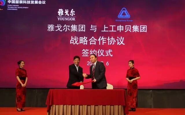 作为中国服装智能制造联盟成员单位,上工申贝集团和雅戈尔集团为了合力打造智能化工厂决定进行战略合作,会上,双方签署了战略合作协议。