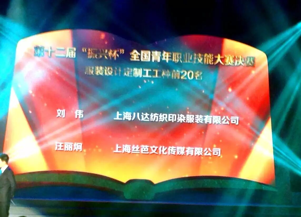 最终,上海八达纺织印染服装有限公司刘伟荣获五名晋升为技师并授予“全国技术能手”和“全国青年岗位能手”荣誉称号,上海丝芭文化传媒有限公司汪丽炯荣获八名。