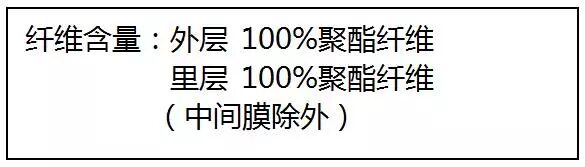 1、 纤维含量 – 由于用于冲锋衣的面料多为涂层和粘膜面料;所以根据GB/T 29862-2013中6.14章节 “含有涂层、胶(粘合剂)和薄膜等难以去除的非纤维物质的产品,可仅标明产品中每种纤维的名称。如有需要,说明是否包含涂层、胶等”。