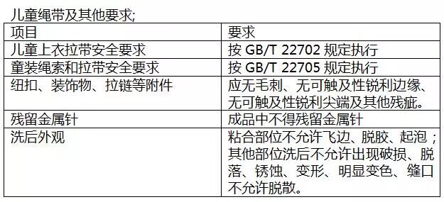 这部分的内容涉及的标准有GB/T 22702 ,GB/T 22705 与GB 31701 (强制性标准),详细的内容请查看这几个标准。这方面的内容也是相当重要的, 尤其是GB31701这个童装的强制性标准。 由于内容较多,就不在这里描述了。