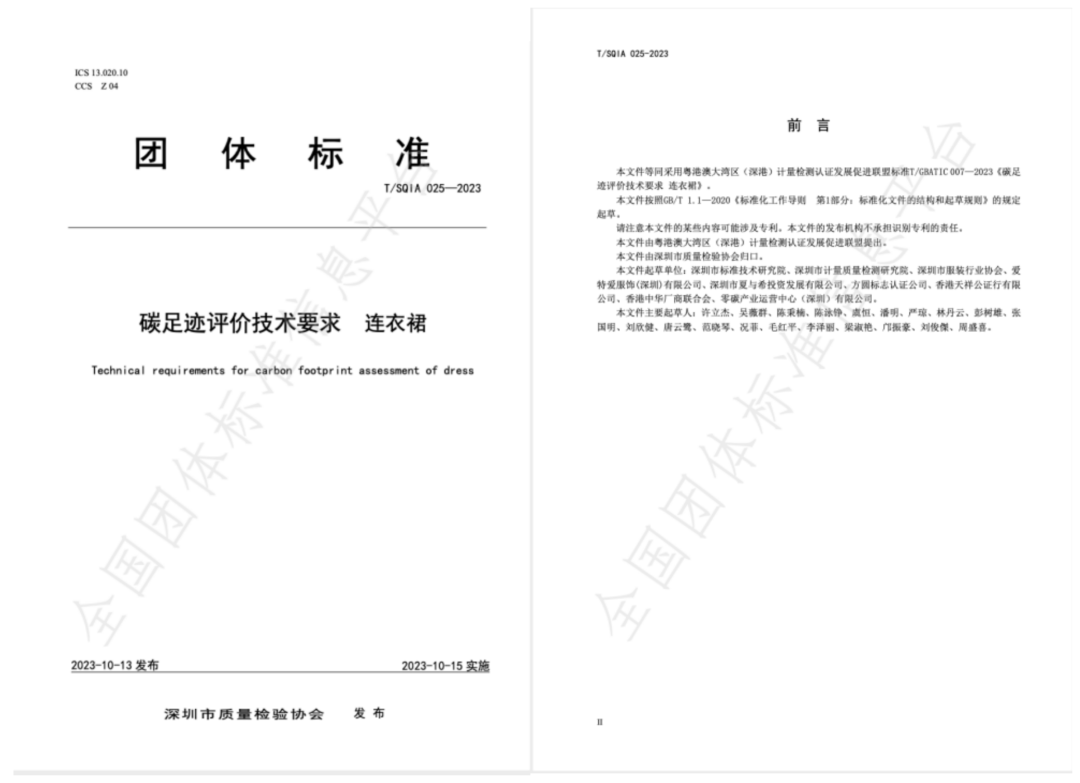 在全力支持碳足迹认证工作的基础上,为确保其科学性和全面性,深圳市服装行业协会还积极联动深圳歌力思服饰股份有限公司、爱特爱服饰(深圳)有限公司、深圳市夏与希投资发展有限公司、深圳市迪凯服饰有限公司、卡尔丹顿服饰股份有限公司等多家企业共同参与连衣裙、毛巾、T恤衫、 化纤面料、衬衫5个品类碳足迹评价技术要求团体标准起草。