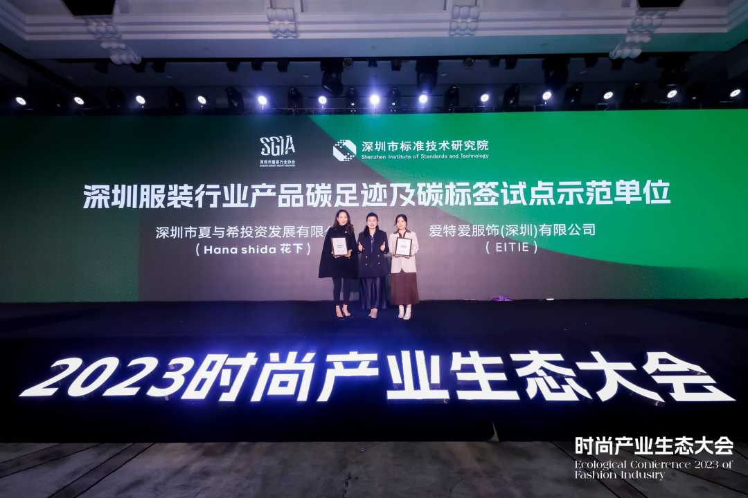 2021年12月,深圳市服装行业协会联合深圳市标准技术研究院启动深圳服装行业产品碳足迹及碳标签试点工作,与玛丝菲尔、歌力思、HanaShida花下、爱特爱等企业/品牌联合开展了深圳服装行业产品碳足迹及碳标签试点项目,并于2022年4月发布了国内首个高端女装碳足迹评价报告——《玛丝菲尔服装产品碳足迹评价报告》、于2023年相继发布《花下服装产品碳足迹评价报告》、《爱特爱服装产品碳足迹评价报告》。