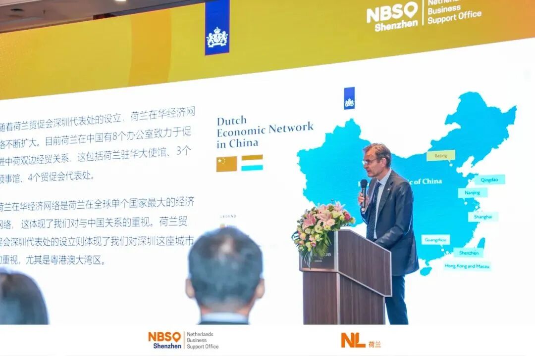 荷兰驻华大使昊使博致开幕词。他表示,深圳是一座充满活力的国际化创新型城市,许多荷兰企业如飞利浦、帝斯曼、范德兰德、特瑞堡、Royal Haskoning、MVRDV、MLA+、OMA、UN Studio等都在深圳取得了巨大的成功。中荷两国正积极寻求循环经济相关领域的合作机会,如能源转型、可持续生产、废物减排和再利用等,共同应对全球性挑战。荷兰贸促会深圳代表处的设立,将进一步推动中荷经验与智慧互通有无、合作共赢,为双方经贸活动注入更多活力。