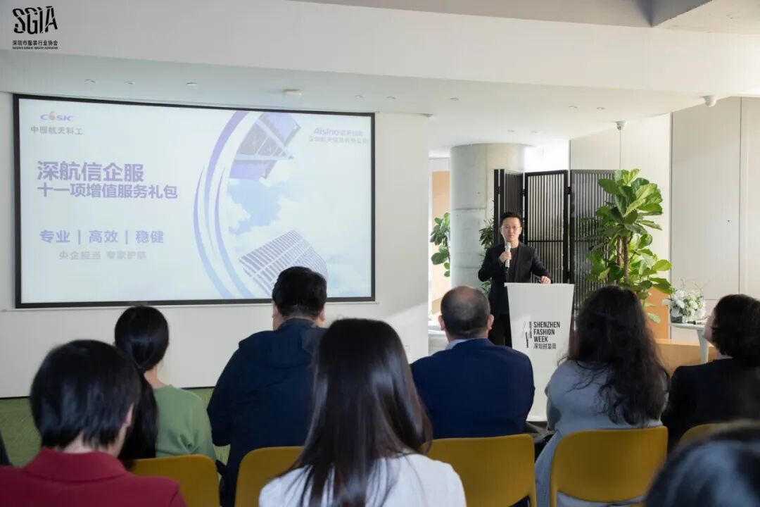 会上,深航信企服中心主任李子文详细介绍了为服装企业定制十一项增值服务,通过定制各行业领域的顶尖专家,为时尚行业提供包括政府补贴申请、国高/专精特新/小巨人申请咨询、股权融资设计、股权融资/IPO财务审计咨询、债券融资结构优化、供应链金融赋能、人力资源优化、税务合规咨询、国际企服咨询、院校合作咨询、云算力租赁服务等特色十一项特色增值服务,以智慧财税为核心,以业务价值链为主线,从政府补贴申请、融资上市、财务审计、供应链金融、人才培养、国际拓展、数字云平台等各方面赋能,以数字化转型为驱动,为企业发展提供“全链条”、“全方位”的贴心服务与全力支持,助力企业高质量发展。