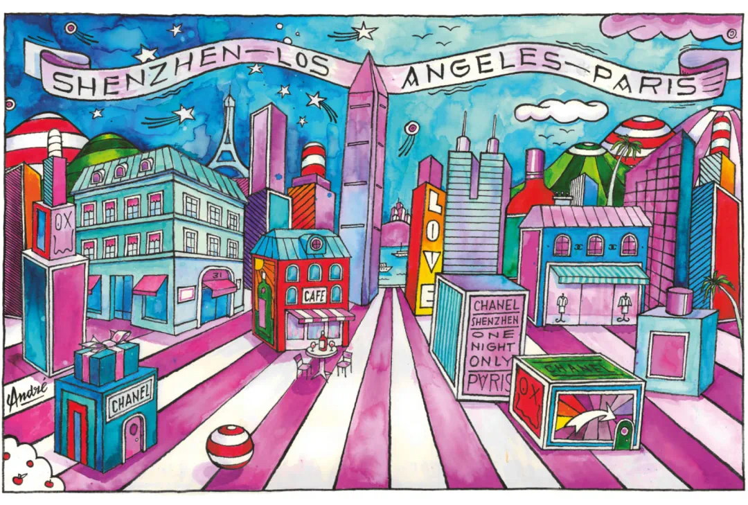 视觉艺术家 André 延续洛杉矶大秀的灵感,为深圳发布会创作邀请函与视觉艺术海报,描绘他眼中的深圳景观。预热影片则由 Inez & Vinoodh 执导。