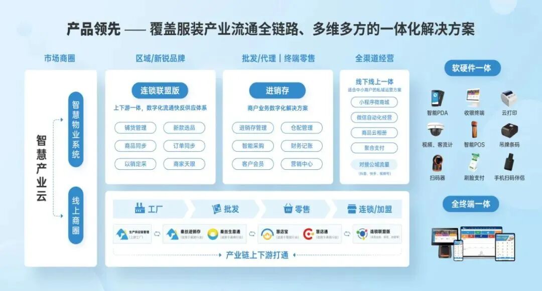 深圳市秦丝科技有限公司(以下简称:秦丝)成立于2014年8月,是一家中小商户信息化解决方案研发与服务商,专注于为实体批发零售制造商提供数字化及全渠道经营管理提升解决方案,秦丝主要业务包括“进销存管理数字化+全渠道经营管理提升+配套商用硬件+商家生态服务”四大业务板块。采用【免费+硬件/增值】的创新收费模式,使得广大商家能0成本或极低成本实现管理数字化,极大地加快数字化在中小商家群体中的普及。截止目前,已有注册商户超过200万,其中在服装领域注册商户约150万家。根据各大主流应用市场统计数据,秦丝产品目前全网下载量超6000万,秦丝进销存、秦丝生意通等产品在华为应用商城、苹果商城等进销存APP领域长期排名前列,在行业内具有良好的口碑和品牌效应。