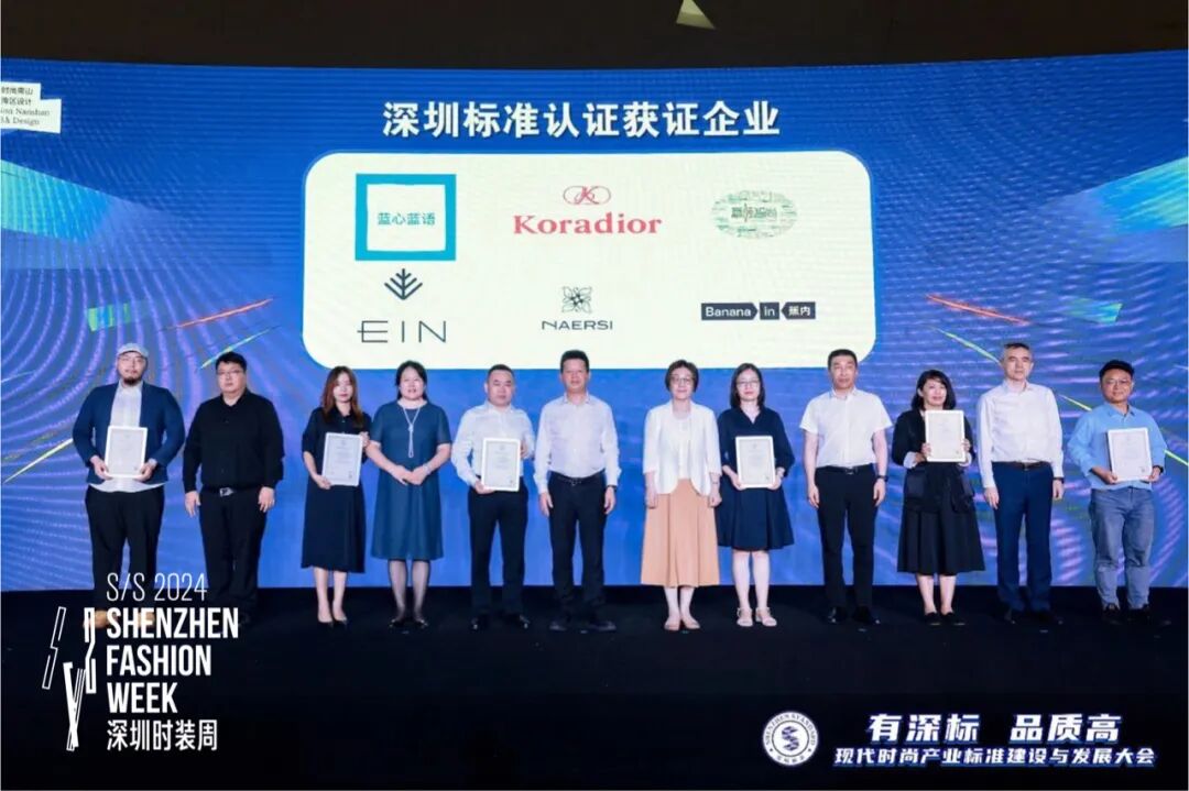 深圳标准认证已在现代时尚产业中的家具、珠宝、服装、眼镜、钟表等行业发布57个产品目录和1个服务目录,以本次发证的纺织服装行业为例,目前累计17家企业获得26张证书。