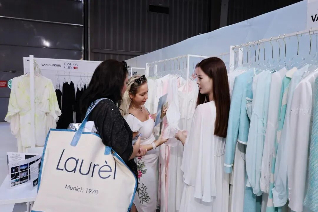 品牌上善展位现场人气爆棚,客户资源对接辐射至阿拉伯,现场订单签约超310万欧元,约合人民币超过2431万。品牌凭实力破圈,这也充分体现了上善在设计和市场表现中的卓越之处。品牌感性、奢雅、灵魂系仙气的新贵着装风格,并且注重融入东方文化元素,这为他们赢得了广泛的国内外市场。