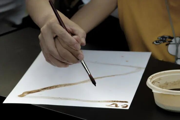 使用废弃的咖啡渣浸泡成咖啡液作画