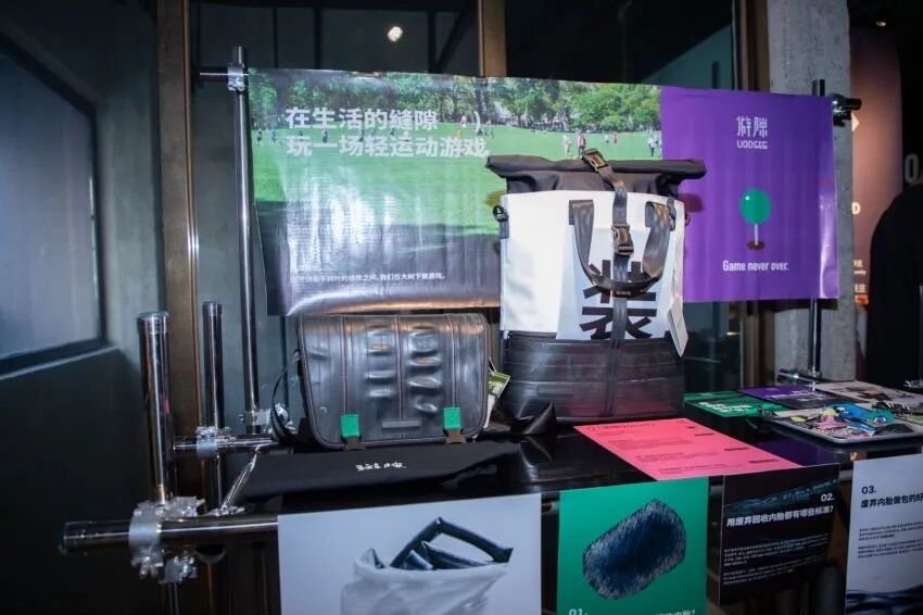 在生活的缝隙,玩一场运动游戏。作为轻运动生活方式品牌,游隙正在尝试一场好玩的循环实验游戏——解构世人眼中的「废 料」,以自行车废旧内胎为原材料,进行全新设计&风格再创造,将它们重新制作为“潮牌运动包”,赋 予第二次时尚「轮」回的可能。