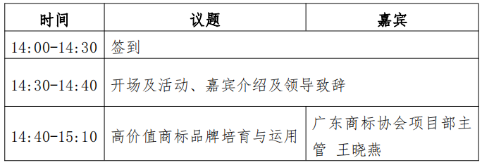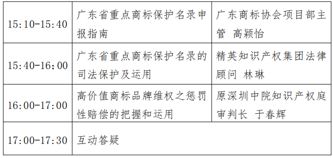 为了帮助深圳市知名企业提升商标保护及品牌培育能力,以及了解广东省高价值商标品牌培育认定的申报相关事宜,广东商标协会拟举办“广东省高价值商标品牌培育与保护研讨会(深圳站)”,特邀资深商标法务专家及知名企业商标负责人就广东省高价值商标品牌的培育展开分享,并全方位介绍广东省高价值商标品牌培育及保护相关策略。