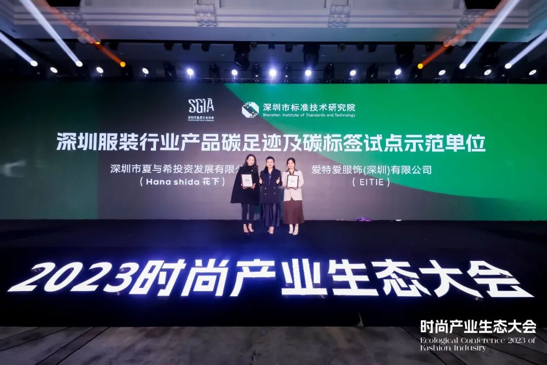 随后进行的授牌仪式上,深圳市夏与希投资发展有限公司、爱特爱服饰(深圳)有限公司获颁“深圳服装行业产品碳足迹及碳标签试点示范单位”,同时,大会也号召广大深圳服装企业加入绿色时尚可持续行动,持续引导全产业链绿色协同。