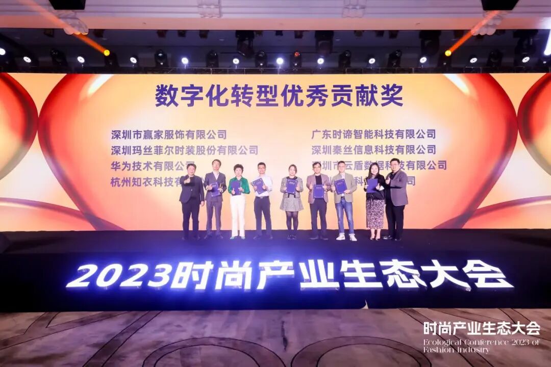 论坛现场还颁发了“深圳服装数智化转型优秀贡献奖”,深圳市赢家服饰有限公司、深圳玛丝菲尔时装股份有限公司、华为技术有限公司、杭州知衣科技有限公司、广东时谛智能科技有限公司、深圳秦丝信息科技有限公司、深圳市云盾数据科技有限公司、深圳仙库科技有限公司等八家公司获奖。