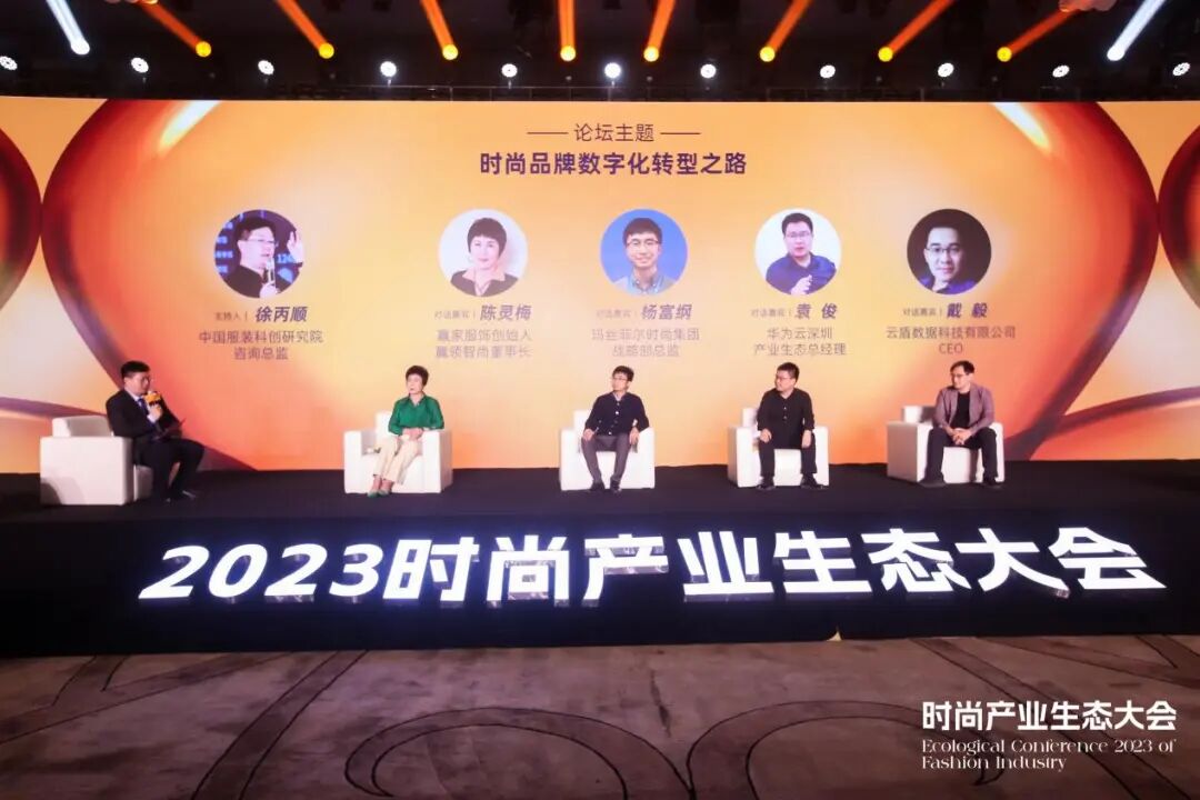 最后进行高峰对话圆桌论坛上,赢家、玛丝菲尔、华为、云盾数据科技等四家知名企业代表以“时尚品牌数字化转型之路”为主题,深入对话,畅谈行业发展新动能。