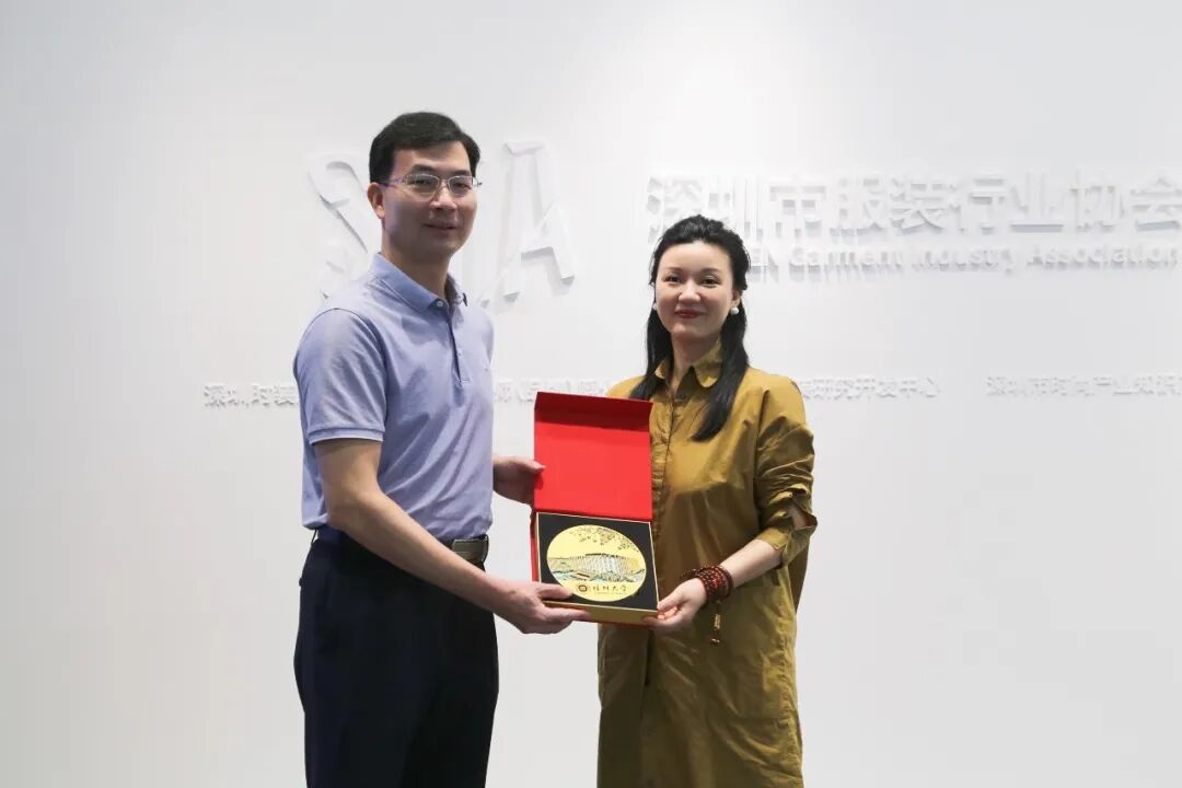 5月23日,深圳大学艺术学部党委书记张剑滨、副主任、美术与设计学院院长陈向兵、副主任、音乐舞蹈学院院长刘琨等来访深圳市服装行业协会并举行座谈会,就产教融合、校企合作、人才培养等问题深入探讨。深圳市服装行业协会会长潘明、秘书长况菲、会长办主任姜美,以及歌力思、玛丝菲尔、万旗等服装企业人力资源负责人到场参会。