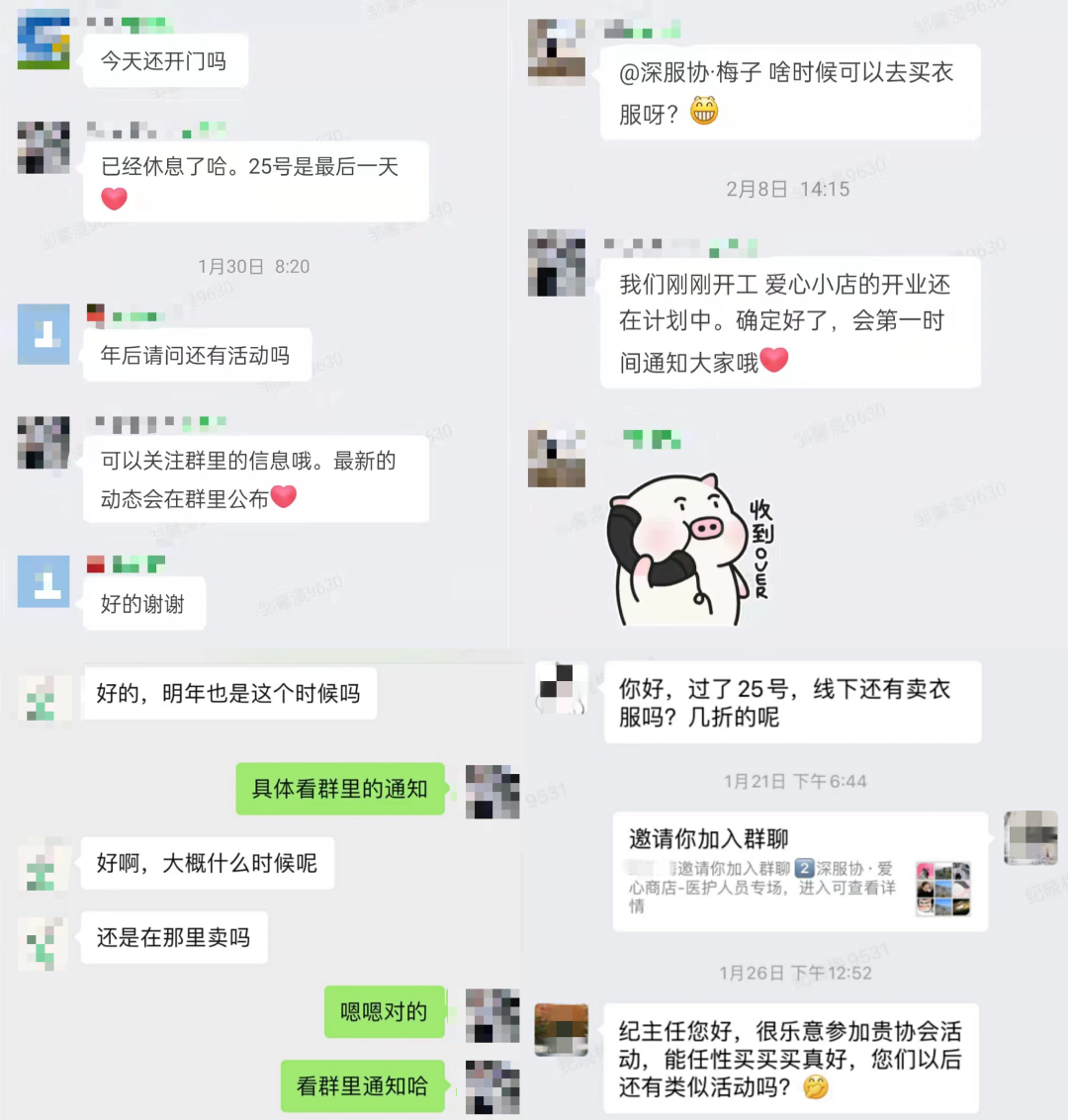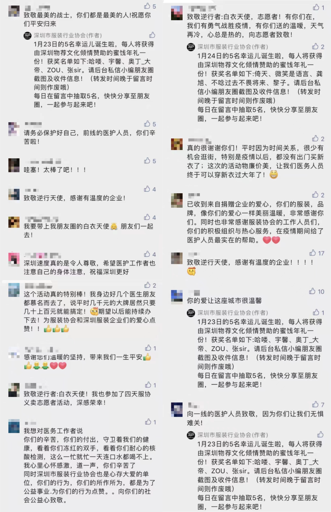 医护工作者及活动者对深圳协答爱商店及深圳服装人的真情回响