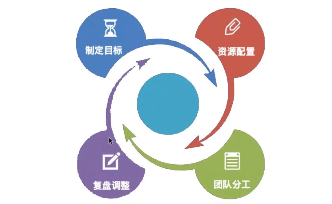 四步工作方法,适用于各行业,各场景,如目标制定,项目规划,个人发展规划适用在电商直播领域,目标制定和商业模式尤其重要,没有定位就没有方向,资源配置从人力,物力,财力等方面综合考量,将重点模块制定出一套属于自己的流程,最后是团队分工和科学复盘。
