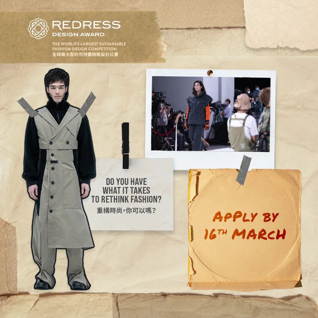 2022 年度 “Redress 设计⼤赛”- 全球最⼤的可持续时装设计⼤赛正向全球征集具有少于四年专业时装设计经验的新兴设计师的参赛作品。你可以重构时尚吗?