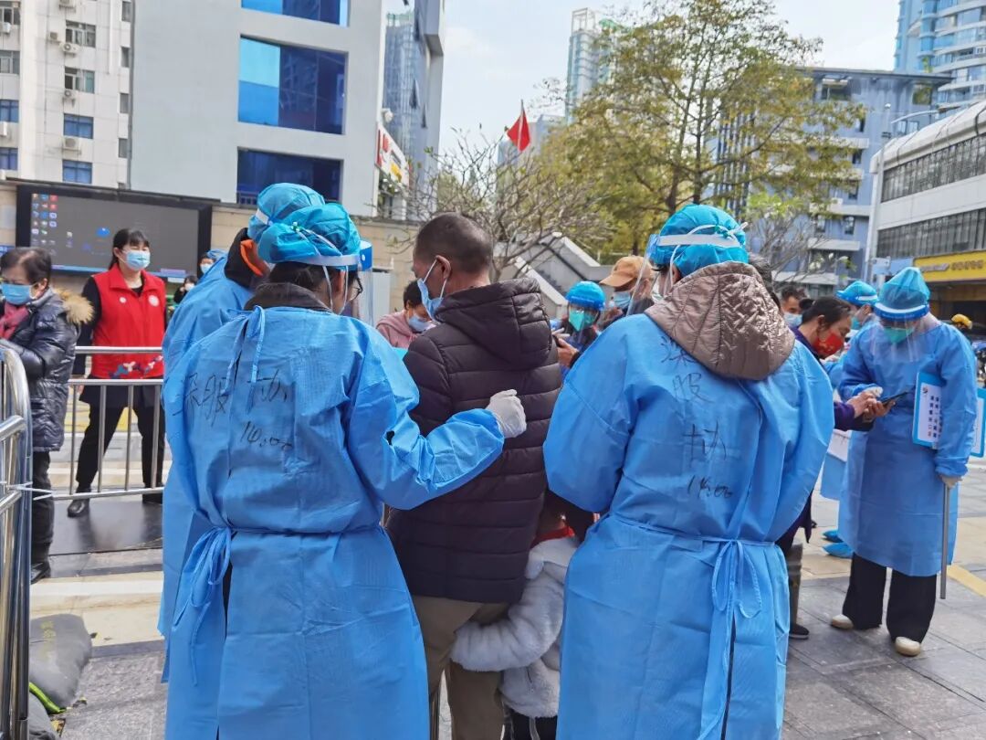 2月24日,深服协社责办多名工作人员组建成深服协志愿者小分队,作为深服协代表以志愿者身份协助新沙社区核酸检测。