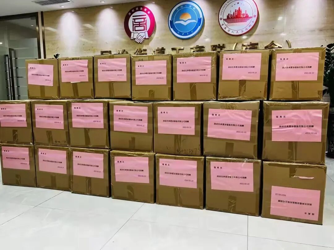 2月22日下午,在香港面临严重疫情的背景下,深服协会员单位深圳市奔霓诗服装有限公司提供2000件防疫物资隔离服支援香港同胞,总价值达172000元。