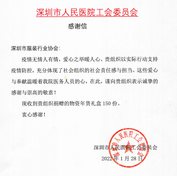 深服协暖心捐赠活动也受到了市人民医院的衷心感谢: