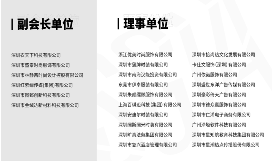 最后,会议通过了新增深圳衣天下科技有限公司等6家副会长单位、浙江优美时尚服饰有限公司等26家理事单位名单。展望2022年,深服协将继续推动时尚产业数字化转型,加大知识产权保护,推进人才引进和发展,推动时尚产业绿色可持续发展,大力开展行业社会责任建设,为深圳乃至全国的时尚产业贡献更多的力量。