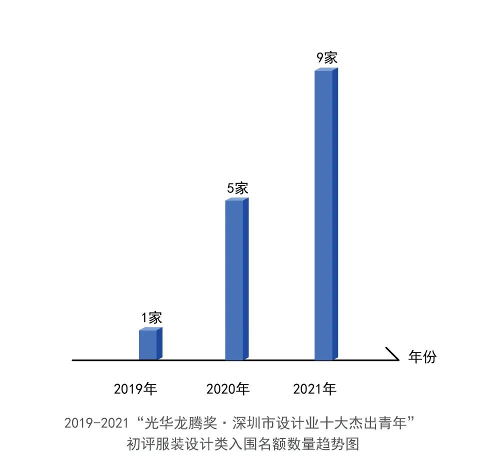 该奖囊括了服装设计类、工业设计类、平面设计类、室内设计类、广告设计类等多种类别,其中服装设计类占据了将近1/3的份额!自深圳市在2019年正式成为“光华龙腾奖·中国设计业十大杰出青年”的全国评选区域以来,服装设计类入围者名额数量不断攀升,可见深圳服装行业的发展呈现如火如荼之势。