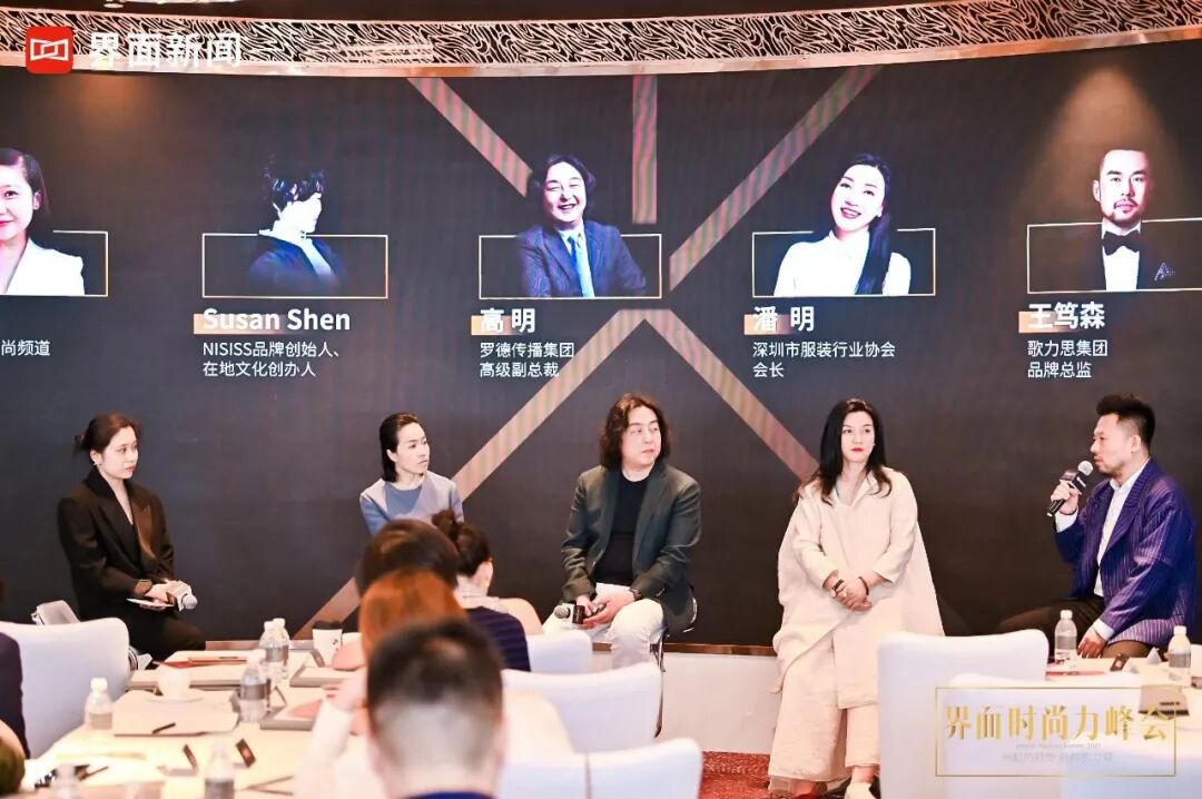 时尚潮流澎湃不息,消费者画像丰富多面。本次圆桌对话由界面新闻时尚频道总监楼婍沁主持。邀请了深圳市服装行业协会会长潘明,罗德传播集团高级副总裁高明,NISISS品牌创始人、在地文化创办人Susan Shen沈淑婉,ELLASSAY歌力思集团品牌总监王笃森作为对话嘉宾,立足企业立场,讲述品牌故事,解密时尚消费者的新画像。