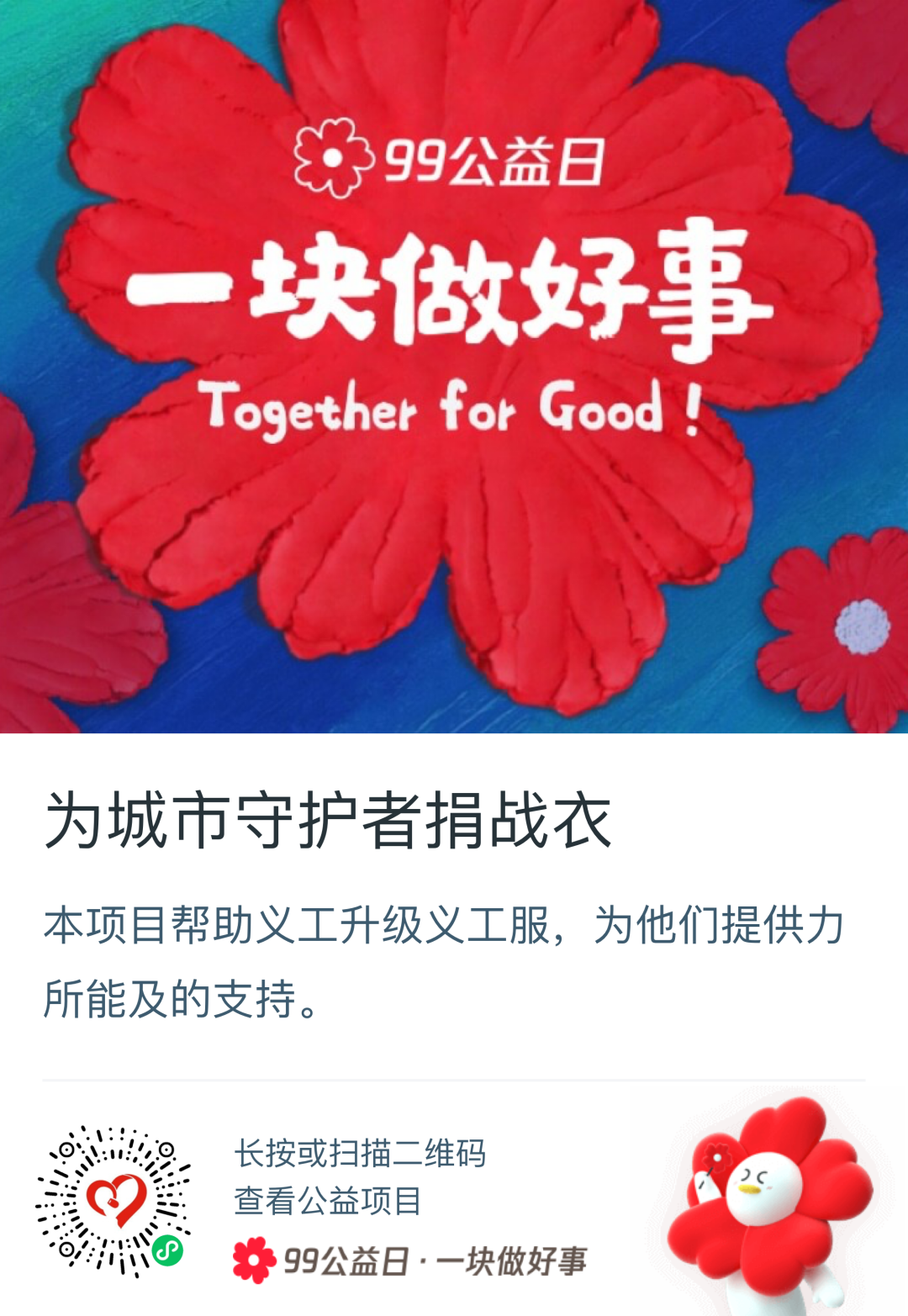 该公益项目于9月7日—9日参加为期三天的腾讯“99公益日”活动。