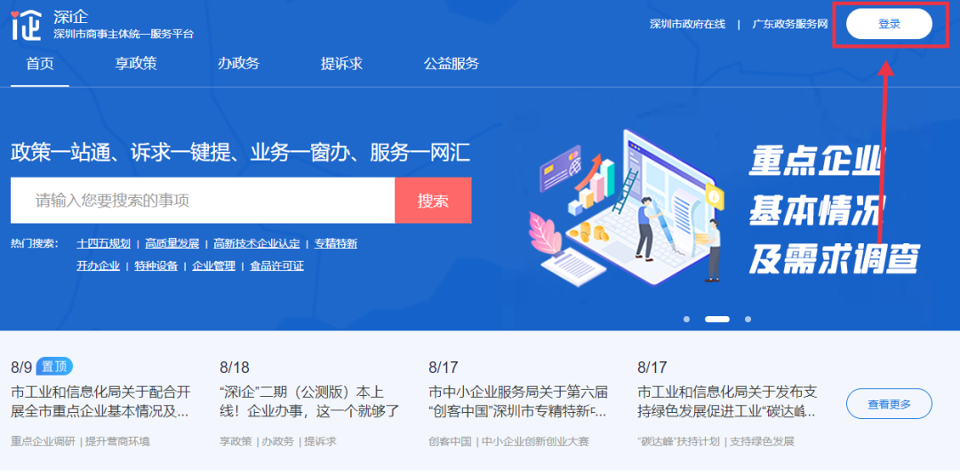 1.登录深i企-深圳市商事主体统一服务平台(https://www.szsiq.com,账号密码与广东省政务服务网登录账号密码一致),搜索“深圳市专精特新中小企业遴选”,在线填报申请书。