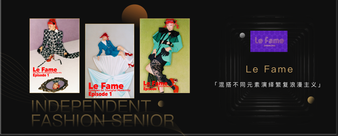 另一个签约设计师品牌是拉飞姆(LE FAME)品牌。2015年,该品牌创立于上海,最初是一家上海的老洋房精品酒店。创始人将自己对西方艺术、建筑和海派文化的浓厚兴趣,充分融入并诠释在品牌基因内,通过混搭不同元素来制造浪漫复古风情,演绎极具女性气质的繁复浪漫主义时装风格。