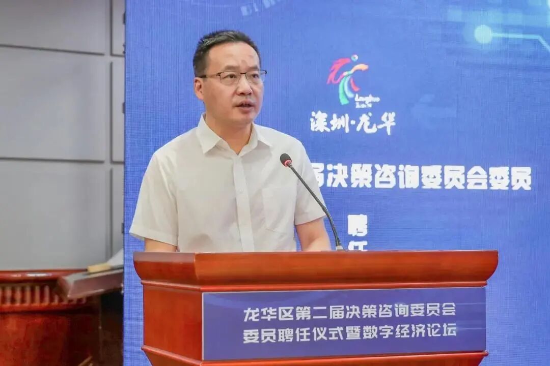 在聘任仪式结束后举行的委员论坛上,深圳原副市长、哈工大教授唐杰,美团党委书记钟永健围绕“数字经济”作了主题演讲,随后市决咨委专职委员刘忠朴,深港科技合作促进会会长张克科,中科院研究员、人工智能与数据科学研究院(龙华)院长曾大军,华盟科技咨询公司CEO孙桂华等委员就“数字经济”进行了交流讨论,以不同视角为龙华区经济社会发展建言献策。