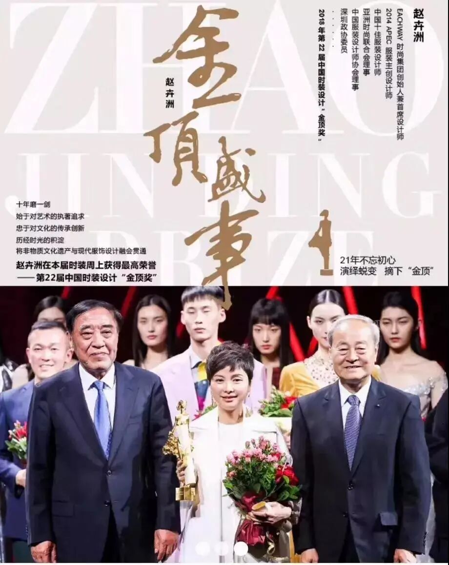 赵卉洲每年带领设计团队奔赴偏远地区,与绣娘们学习交流。在随贵州省妇女联合会前往贵州贫困乡村考察期间,其不仅在当地资助建立了汇聚100多位绣娘的工坊,更将绣娘们古朴的作品运用在全新的时装设计中。