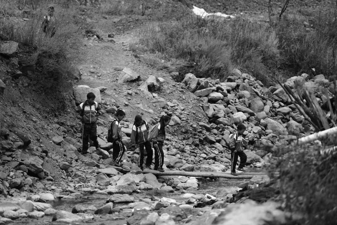 孩子们总是起得很早,眼睛还没全睁开,就要爬7个多小时的山路去学校。他们身材小小的,肩膀像竹竿一样,瘦弱的小腿摇摇晃晃,迈上崎岖不平的山路,总让人捏一把汗。