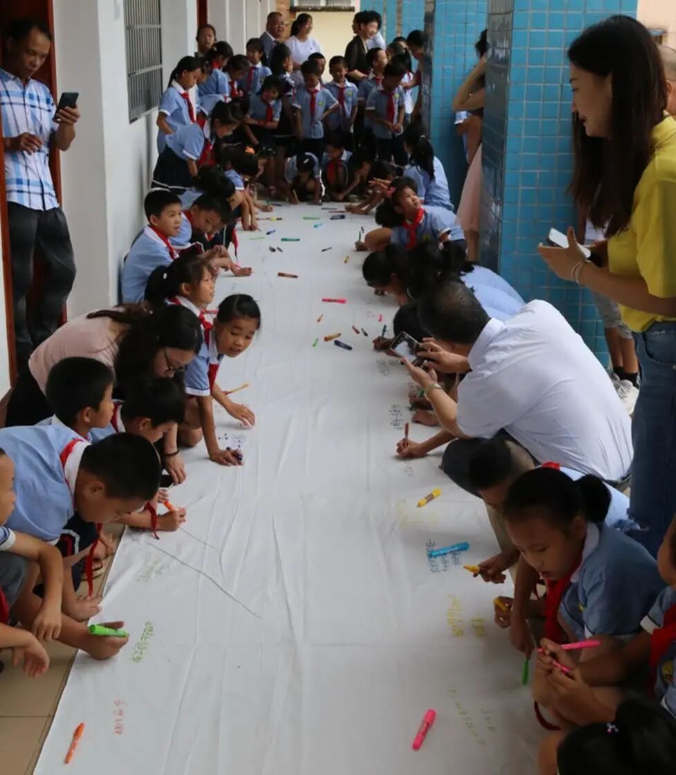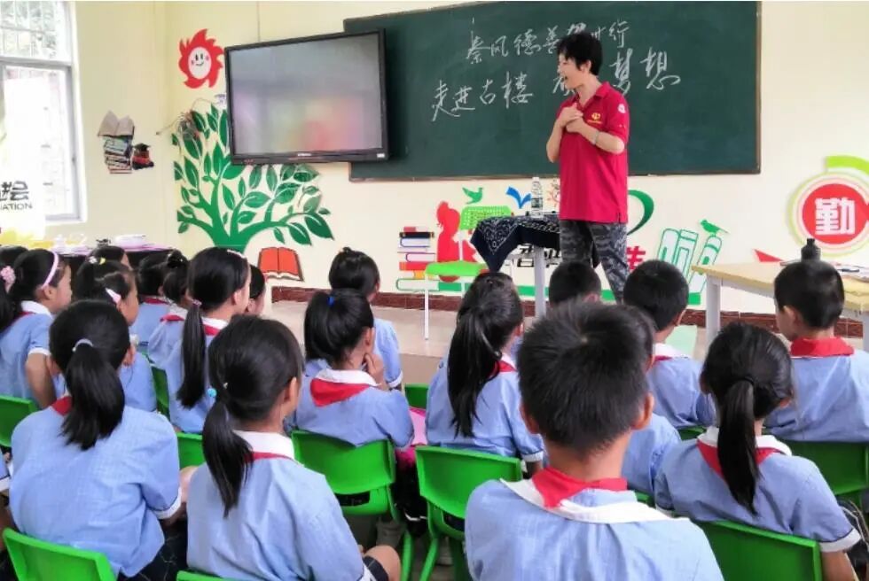 这温馨的一幕发生在2019年8月27日贺州市钟山县红花镇古楼村古楼小学,当时贺州市民政局、《秦风》杂志社及深圳市德善公益促进会的公益志愿者们准备在古楼小学的留守儿童活动示范中心为这些留守学生们上课,一堂别开生面的课。