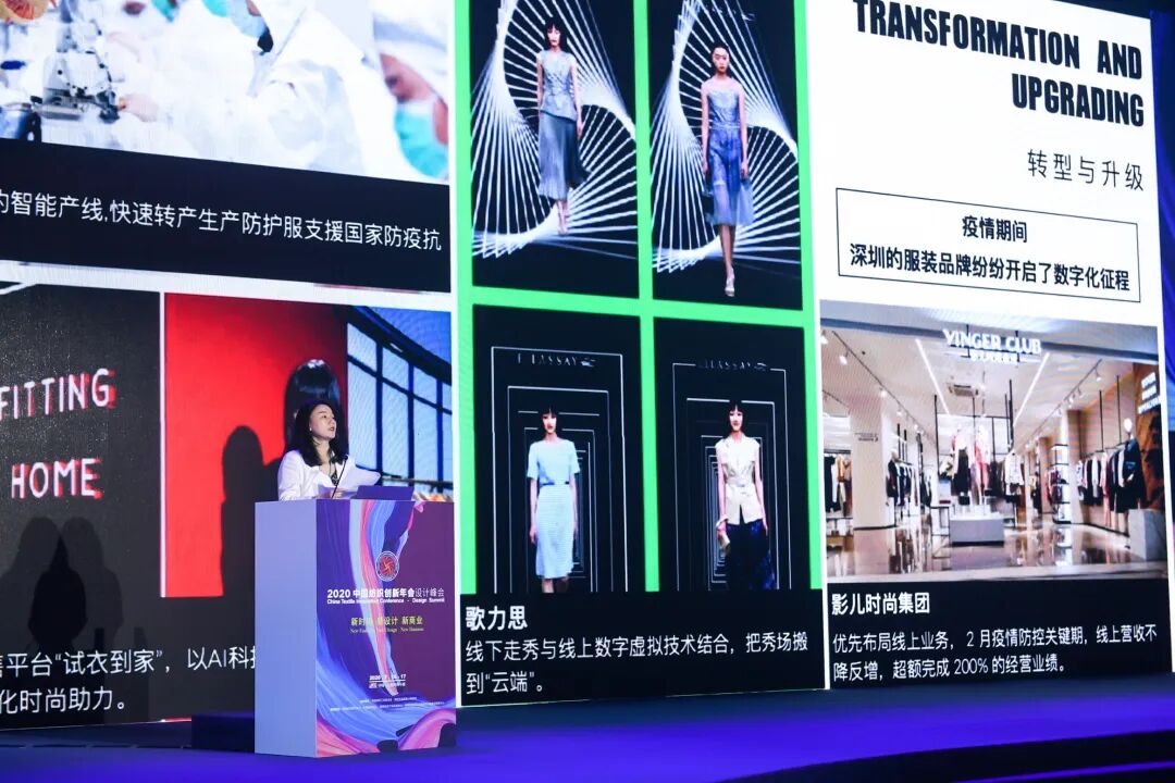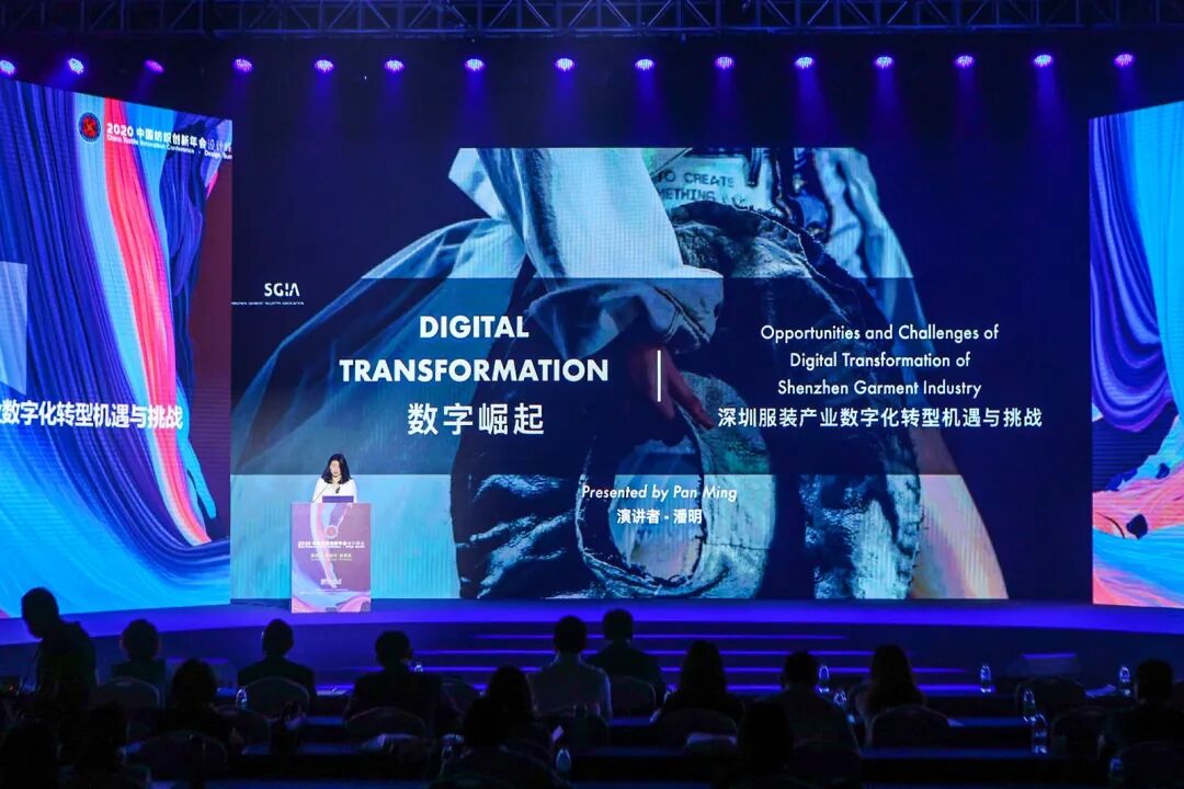 会上,深圳市服装行业协会会长潘明作“数字崛起——深圳服装产业数字化转型机遇与挑战”主题演讲。她提到,疫情期间,深圳的服装品牌纷纷开启了数字化的征程。