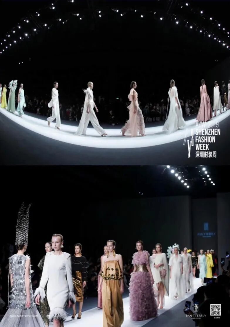 2019年,PAN'TTERFLY入驻深圳时装周,整场服装秀的作品同时具有前瞻的设计实验性和可穿性。梦幻的亮片点缀于轻薄纱裙,犹如闪耀星空交织绚烂,在行走间律动感十足,栩栩如生。潘榕对于时装有着与生俱来的敏感,时装设计原本就是感性艺术的表达,每一个镶嵌,每一个线条,每一次裁剪,每一个点缀,都是独一无二的。从场地安排,模特挑选,饰品制作,服装细节,都是设计师全程跟进。共同打造出这一场璀璨夺目、震撼人心的走秀。