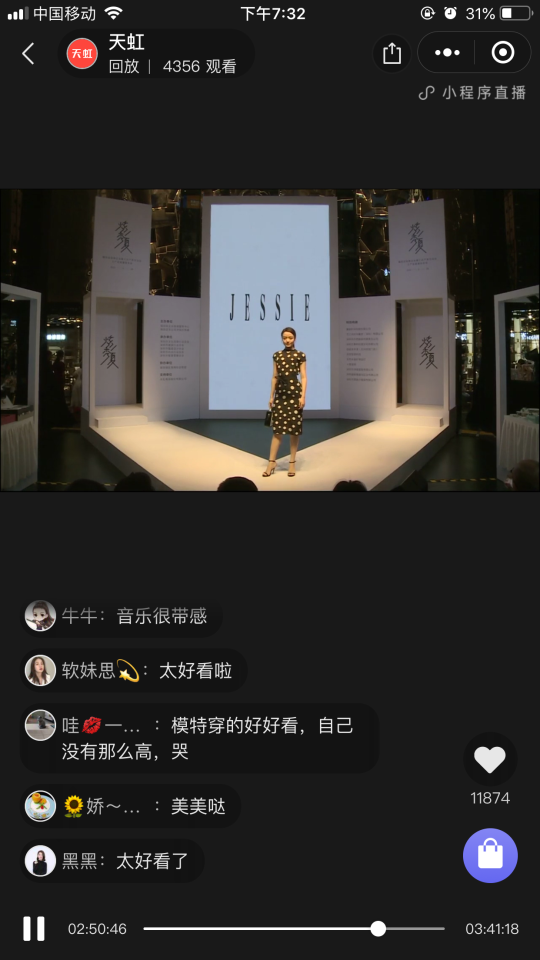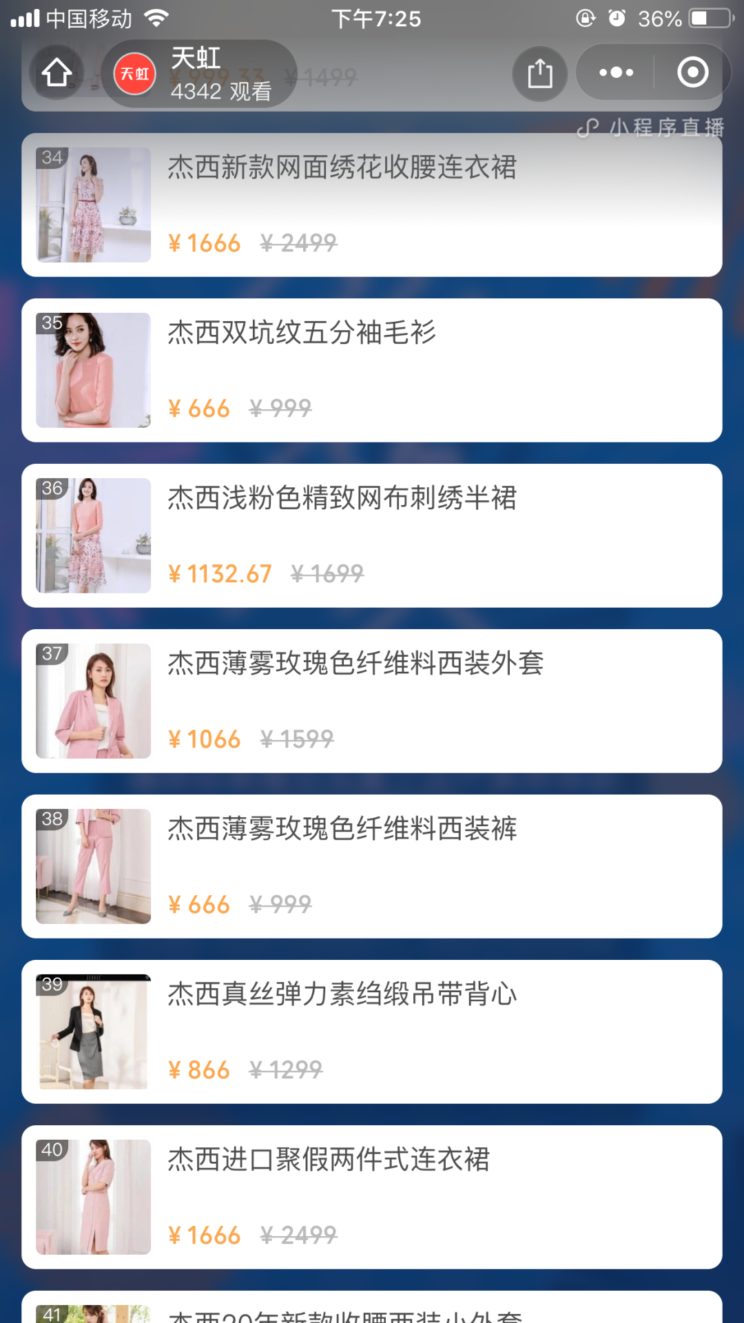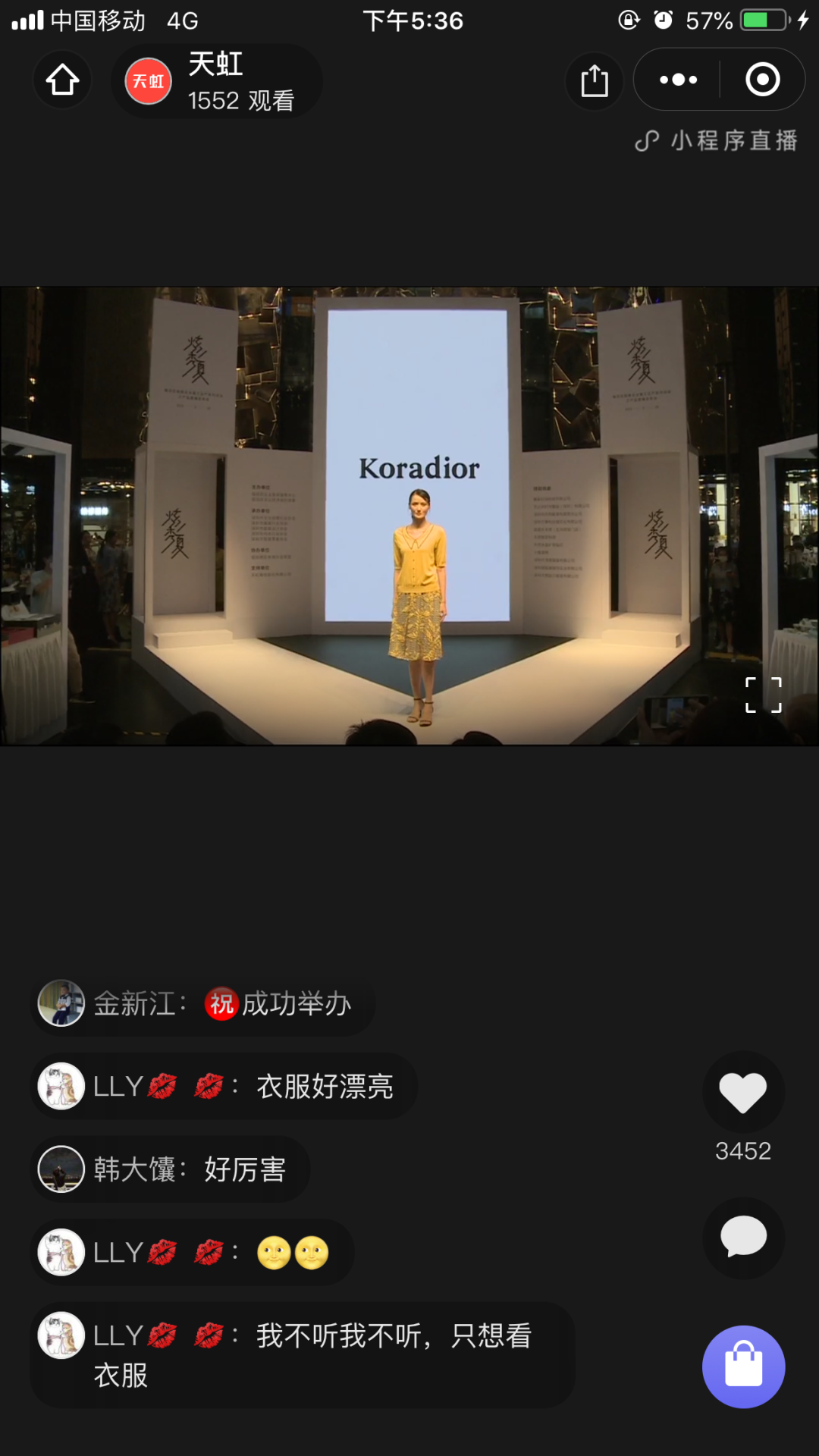 “我们注重服装的品质感与高级感,采用进口的面料,加上专业的色彩搭配,蕾丝的拼接,H 版型的设计更能凸显身体的比例。”走秀中,杰西服饰的专业搭配师也随着模特走上T台,为观众讲解着新款服装的设计理念,与此同时直播的页面上也出现了线上购买的链接。