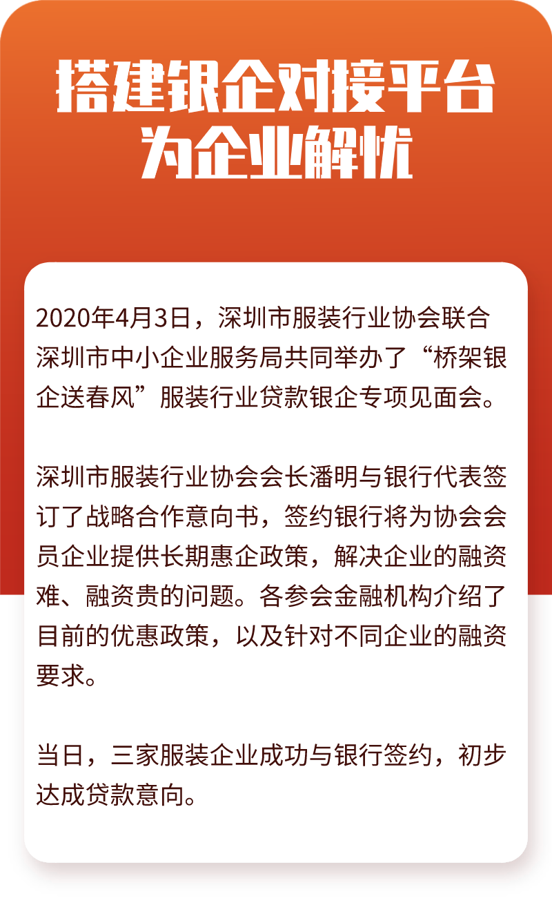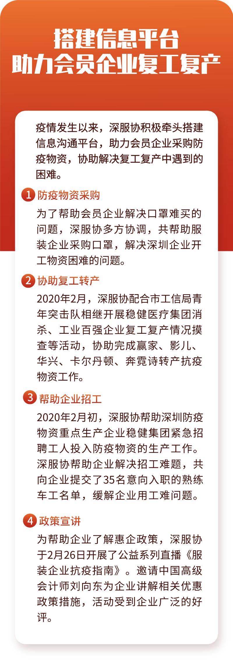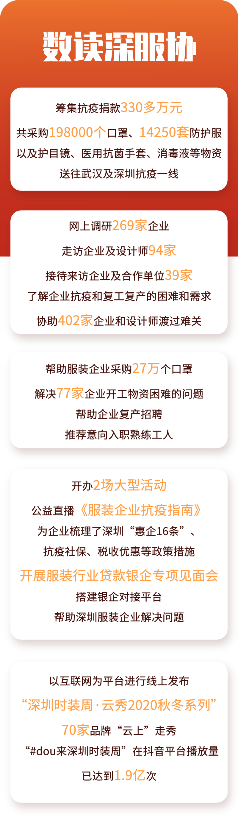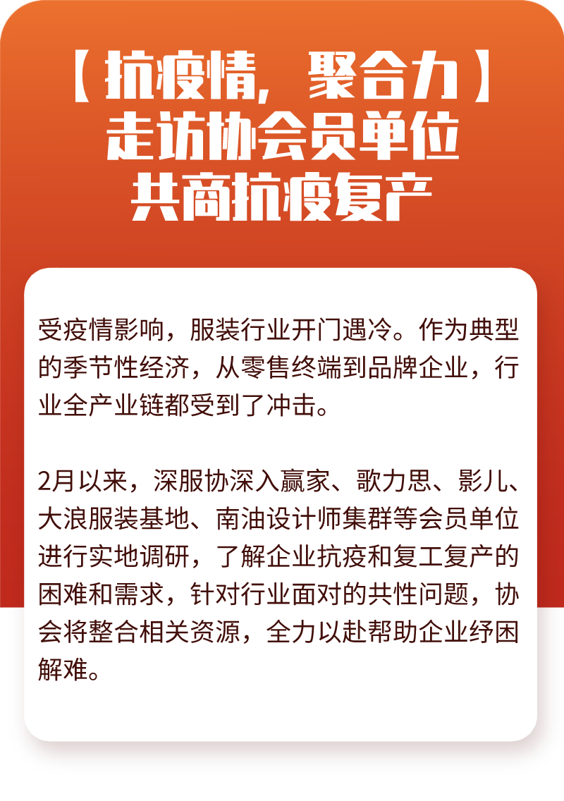 2020年多数行业开局遇冷,服装行业受到冲击在所难免。服装行业是深圳的优势传统产业,具有技术领先、人才聚集和配套集中等特点。深圳服装企业虽然受到疫情影响,但凭借良好的产业积淀,仍能在“危”中寻“机”。今年以来,深服协也多管齐下,通过企业走访、协调防疫物资等渠道帮助深圳服装企业求新求变,助力复工复产。