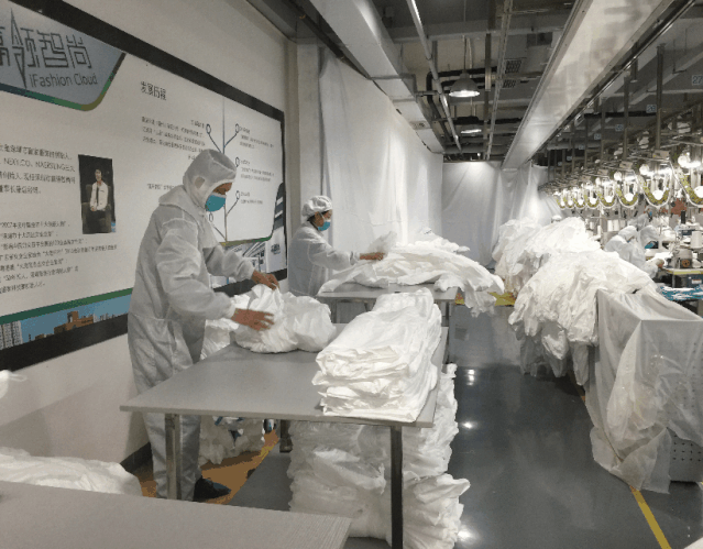 3天时间,一间1000平方米的女装智能制造生产车间就被改造成了专门生产医疗防护服的无菌车间,预计3月底将为前线输送5万套防护服。