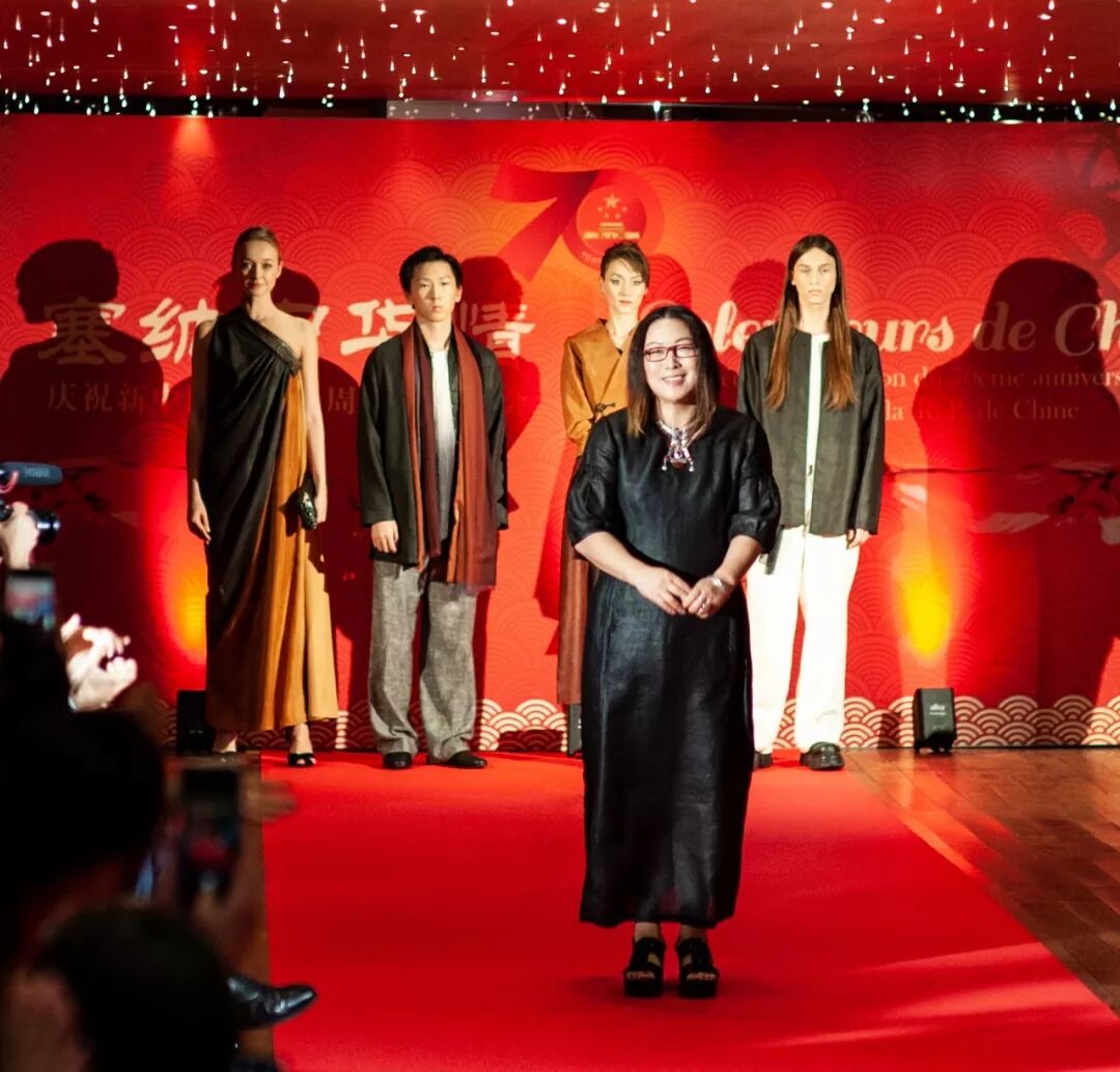 法国当地时间9月27日晚,“塞纳中华情——庆祝新中国成立70周年专场晚会”在法国巴黎塞纳河畔举行。中国驻法国大使卢沙野、巴黎中国文化中心主任严振全、中国银行巴黎分行行长何立勤,以及中外政治、经济、文化领域和新闻界等150多位嘉宾欢聚一堂,晚会以民族歌舞演出、中国服装秀等形式,共庆祖国70周年华诞。天意高端品牌TANGY Collection作为中国服装秀环节的唯一当代时尚服装品牌,应邀以一场莨绸时装秀讲述了一个中国故事,为祖国70周年国庆献上一份礼物。本次活动由巴黎中国文化中心和中国银行巴黎分行通力合作、联手打造,是海外开展文化传播的有益尝试。