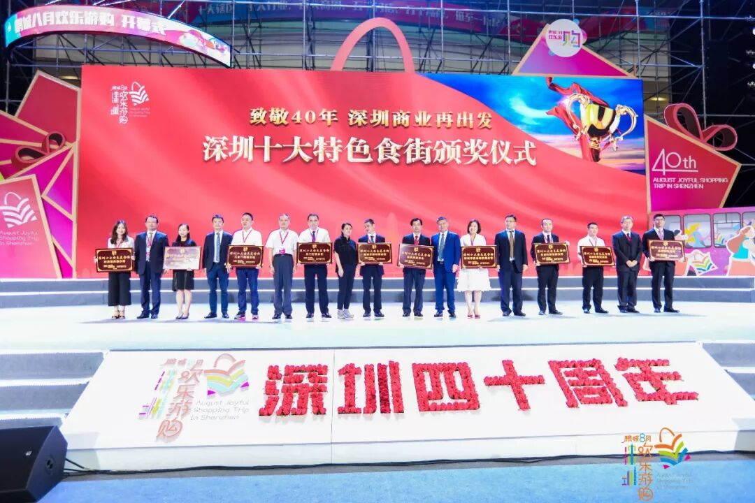 为充分展示深圳商业取得的成就,树立新时代深圳商业行业标杆,在本次“鹏城八月欢乐游购”开幕式上正式公布了由深圳市商业联合会、深圳市老字号协会、深圳市零售商业行业协会、深圳市餐饮商会等协会共同评选的,以“致敬四十年 深圳商业再出发”为主题的评选活动结果。