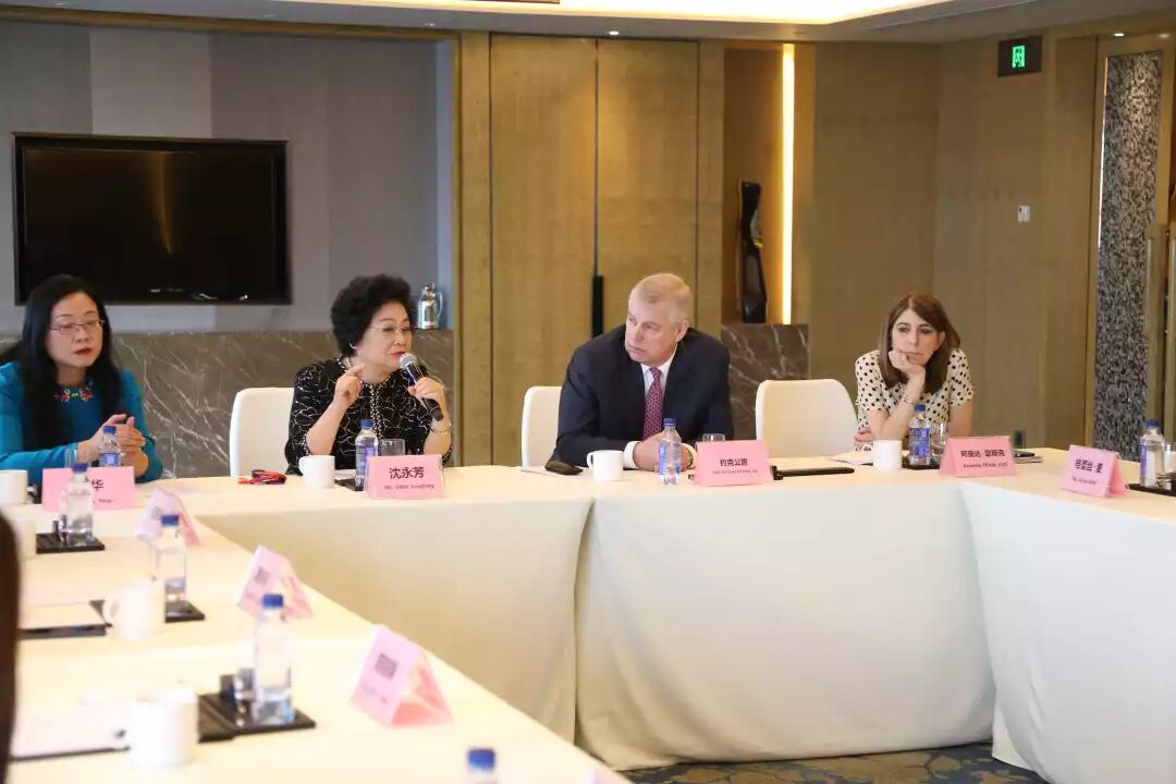 4月15日上午,深圳市服装行业协会会长沈永芳会见了英国约克公爵安德鲁王子一行。双方就深圳服装产业现状与未来化发展进行了深入交流。深圳市部分优秀企业代表和设计师参加了交流会谈。