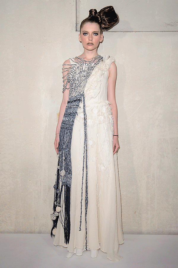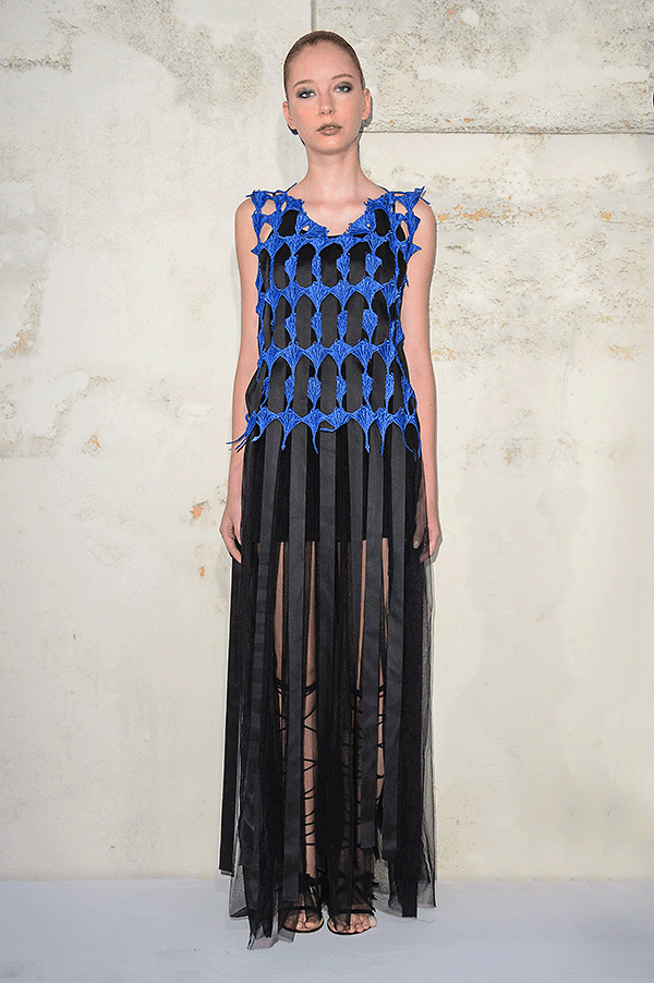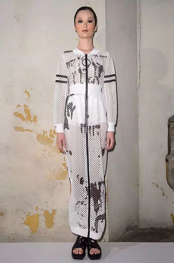 JANET CHEN 2017春夏系列是充满工业科技感的一季,灵感源自精密的线图-包括工业或建筑构造图,而装饰物采用高端材料打印的定制3D打印件。即便如此“硬朗”,却不妨碍系列服装的实穿性和性价比,质感的撞击更有新意。设计师希望把3D装饰服装做的更亲民和融入生活,而不是只放在博物馆展览。